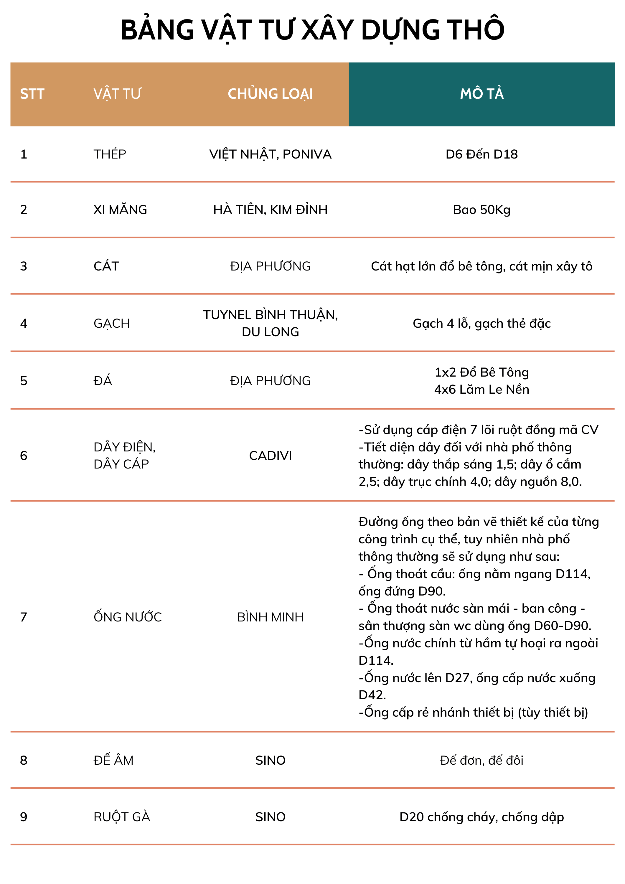 • ✔ Vật liệu thi công phần thô theo nhà thầu cung cấp